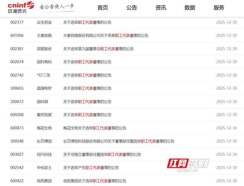 多家上市公司发布选举职工代表公告。无独有偶,同日牛津配资,松井股份(688157)也发布公告牛津配资,同意选举缪培凯为公司第三届董事会职工代表董事。据红网不完全统计牛津配资,当日,全国范围内就有超30家上市公司发布公告,在董事会中增设职工代表董事。这股风潮在湖南资本市场也颇为明显。除上述两家公司外,此前,湖南裕能、湘邮科技、艾华集团、华菱线缆、湖南投资、长沙银行、金天钛业、泰嘉股份、*ST生物、圣湘生物、五矿新能等多家上市湘企发布了选举职工代表董事的公告。为什么上市公司纷纷设立职工董事?这与我国公司治理的改革相关。2024年12月,证监会发布《关于新配套制度规则实施相关过渡期安排》,明确指出上市公司应当在2026年1月1日前,在公司章程中规定在董事会中设审计委员会,行使《公司法》规定的监事会的职权,不设监事会或者监事。随着2025年临近尾声,这项涉及5000余家上市公司的治理结构调整工作已基本完成。根据新公司法相关规定,职工人数300人以上的公司,若未设立监事会或监事会中没有职工代表,其董事会成员中应当有公司职工代表。这正是近期众多上市公司董事会迎来职工代表董事的原因。业内人士指出,职工代表进入董事会,有助于促进决策更贴近企业运营实际,维护职工合法权益,同时也有利于企业发展。相关链接:10余家上市湘企“上新”职工董事,有你熟悉的吗?举报/反馈